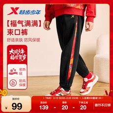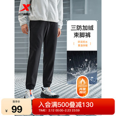 特步加绒卫裤女冬季加厚款束脚裤针织长裤休闲运动裤百搭黑色裤子