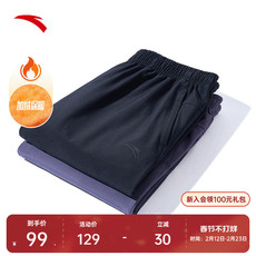 安踏加绒加厚运动裤男长裤秋冬季休闲宽松大码保暖黑色卫裤束脚裤