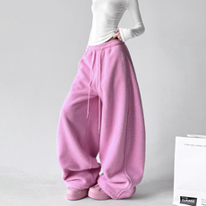 多巴胺粉色摇粒绒运动裤女2025秋冬加绒加厚高级感宽松阔腿束脚裤