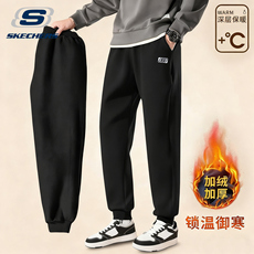 斯凯奇男裤加绒裤官方秋冬新款时尚跑步男士运动裤保暖休闲束脚裤