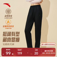 安踏束脚裤丨加绒保暖针织运动长裤女裤冬季直筒运动裤休闲卫裤