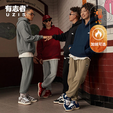 Hipanda你好熊猫重磅设计感美式加绒束脚裤男2025冬季新款休闲裤