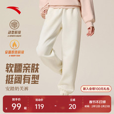 安踏奶芙裤丨卫裤春季加绒女裤新款针织运动裤宽松束脚裤休闲长裤