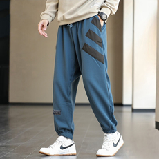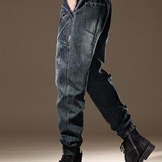 高端美式覆古哈伦牛仔裤子男秋季新款潮牌拼接水洗宽松休闲束脚裤