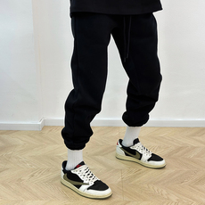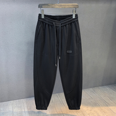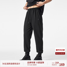 班尼路S&K重磅雪尼尔束脚裤男春季黑色男士休闲长裤日常通勤裤子A