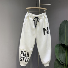 奥特莱斯2025春秋季纯棉运动裤卫裤男加绒束脚裤休闲裤女白色长裤