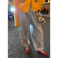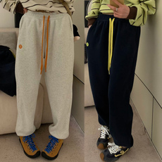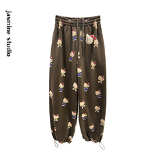 KT猫印花加绒加厚保暖卫裤女冬季高街慵懒阔腿抽绳两穿直筒束脚裤