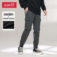 班尼路春秋新款男装日系休闲加绒抽绳长裤少年风工装休闲束脚裤