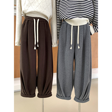 加绒卫裤女冬季2025新款高腰抽绳宽松哈伦运动直筒休闲加厚束脚裤
