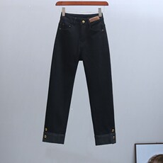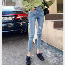 韩系小个子必入弹力显瘦卷边设计超显腿长显瘦9分牛仔裤女春款ins