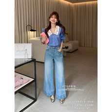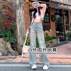 美式白色垂感阔腿牛仔裤女小个子145春季百搭高腰八分直筒拖地裤9