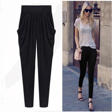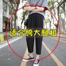 黑色七分哈伦裤女宽松休闲长裤特大码弹力春夏秋冬9分裤300斤