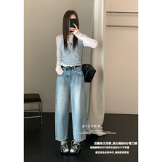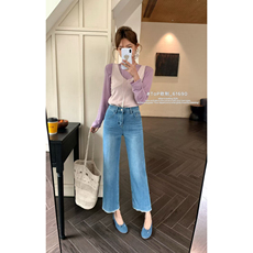 窄版直筒牛仔裤女小个子150秋冬加绒八分宽松高腰显瘦垂感阔腿裤9