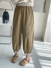 URLAZH有兰夏季新款香草黄休闲宽松萝卜裤轻薄舒适休闲9分裤子女