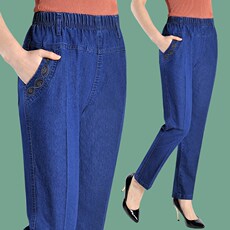 高腰宽松中老年女九分裤直筒显瘦春夏妈妈装松紧腰大码9分牛仔裤