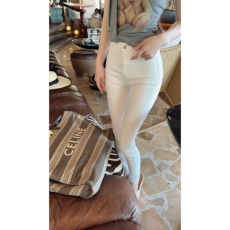 9分裤米白色修身牛仔裤2023新款加绒显瘦直筒裤时尚百搭女烟管裤