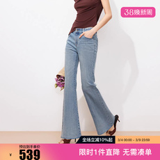 意式薄款开叉复古蓝弹力喇叭裤2023夏款 9分时髦高腰微喇牛仔裤