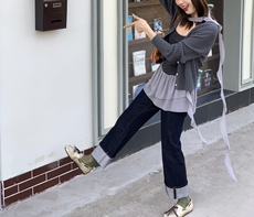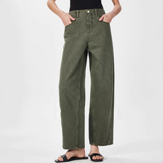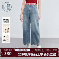 开间/福利回馈 轻解构分割抽绳松紧腰9分弧形全棉宽松企鹅牛仔裤