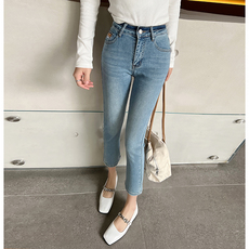 mini jeans 诱惑 17965春装高弹力牛仔裤女9分小直筒烟管裤浅蓝