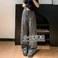 美式复古灰色阔腿牛仔裤女小个子高腰显瘦145八分工装风春季长裤9