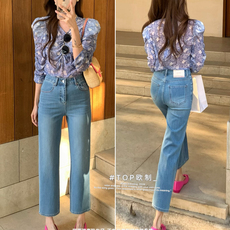 复古九分直筒牛仔裤女2024年新款女士9分裤子窄版显瘦高腰法棍裤