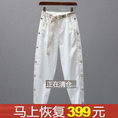 春夏老爹裤女松紧腰宽松显瘦休闲裤新款百搭白色簿款9分哈伦裤潮