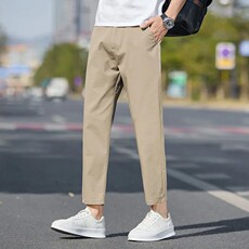 男夏季薄款米白色休闲裤男款夏天男士九分裤子男生直筒修身 9分裤