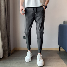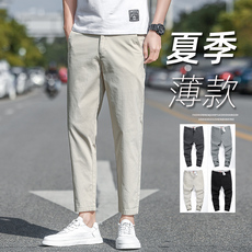 夏季九分裤子男冰丝轻薄款男裤 直筒休闲裤9分裤男士西裤修身潮流