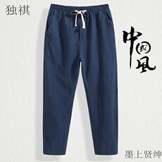 亚麻九分裤男夏季薄款休闲裤中国风棉麻裤子直筒宽松锥形裤9分裤