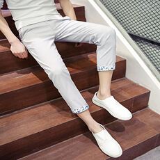 FLANDI男士九分裤夏季棉裤子修身休闲裤男韩版潮流弹力9分收腿