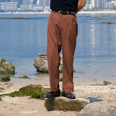 SOARIN英伦复古棉麻九分西裤男 夏季透气休闲百褶直筒修身9分裤子