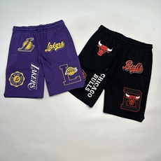 秋季新品 男士球队加绒直筒五分裤万针刺绣+印花队标超级大码短裤