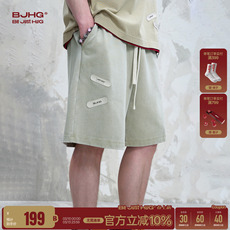 BJHG不计后果创口贴美式短裤男夏季潮牌复古宽松休闲牛奶五分裤子
