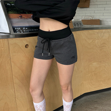 辣到中暑夏季美式复古辣妹条纹拼接抽绳短裤运动风休闲百搭热裤
