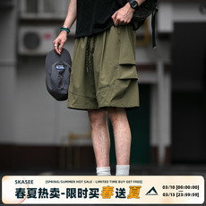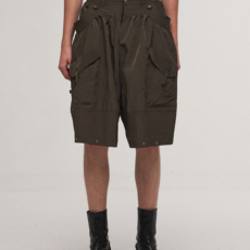 「 凌鸦ILNya 」差池_棕绿 降落伞短裤 立褶夏季大口袋宽松短裤