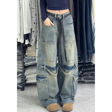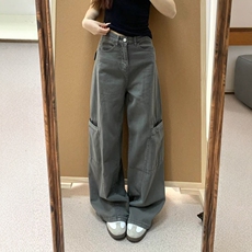 BJHG不计后果休闲裤子男冬季复古牛仔裤灰色废土风立体口袋工装裤