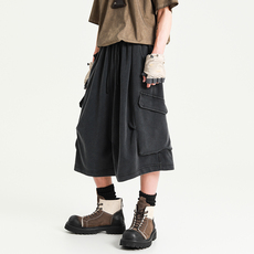 RO风格Cargo Bela 涂层材质多口袋工装五分裤宽松阔腿短裤男女潮