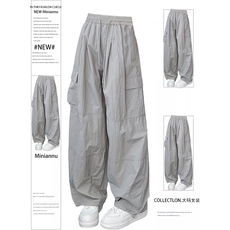 米白色网眼透气裤子男夏季薄款美式速干尼龙工装裤直筒冲锋运动裤
