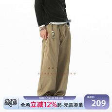 JHYQ净化眼球秋季美式褶皱弯刀工装男宽松直筒潮牌休闲阔腿裤