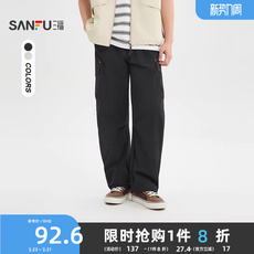 三福2026夏季新款休闲裤男工装大口袋抽绳宽松橡筋腰直筒裤子长裤