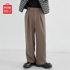名创优品老钱风西装裤男秋季直筒垂感休闲卡其色高级正装九分裤Y