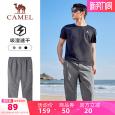 骆驼男装纯棉针织卫裤男士春季黑色宽松直筒休闲运动百搭长裤子