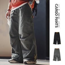 GENIOLAMODE美式复古水洗工装裤子男士春季新款休闲宽松阔腿长裤