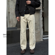 Entong杏色cleanfit简约直筒牛仔裤子男生2026春秋季新款痞帅长裤