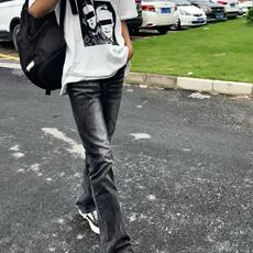 Entong美式高街cleant黑色牛仔裤子男款秋季潮流直筒显瘦百搭长裤