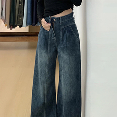 胖mm大码女装原创设计感牛仔裤女美式复古阔腿裤子水洗个性直筒裤