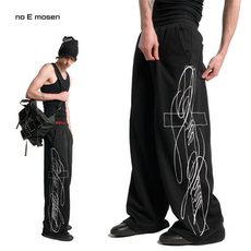 no E mosen(noE)十字花体高密立体绣花baggy版型休闲基础卫裤