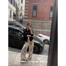 十一石 时髦豹富 全棉豹纹印花阔腿休闲裤女宽松显瘦直筒裤春夏II