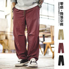 美式基础斜切百搭休闲裤男春季显瘦显高潮流宽松直筒工装微喇长裤
