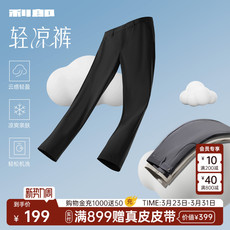 名创优品直筒西装裤男士夏季冰丝防晒垂感黑色正装休闲高腰裤子Y